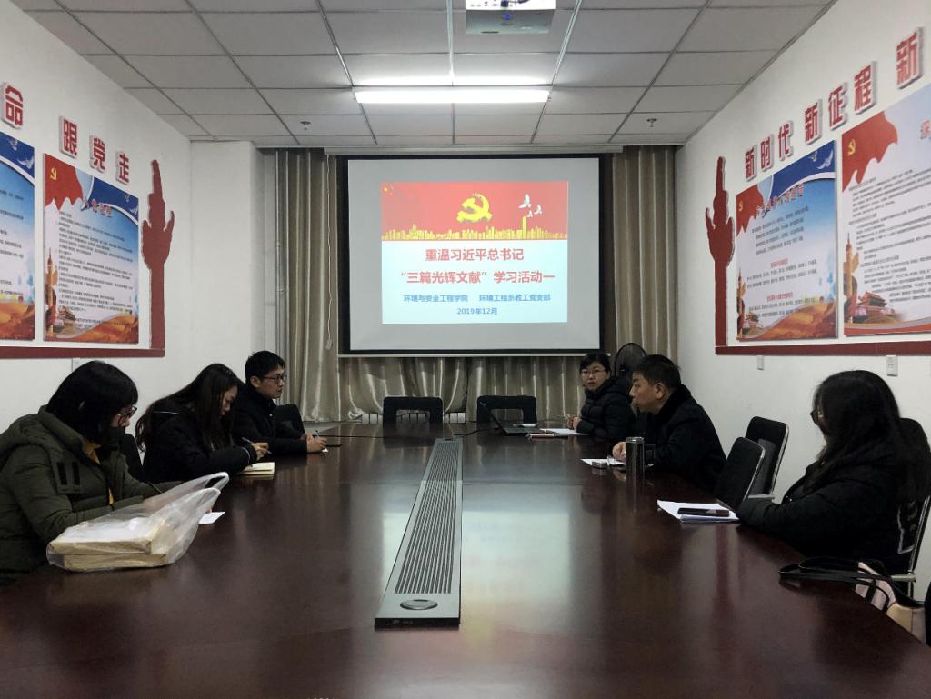 环境工程教工党支部组织召开习近平总书记“三篇光辉文献”学习会,支部全体党员参加,支部书记晋日亚同志主持学习。