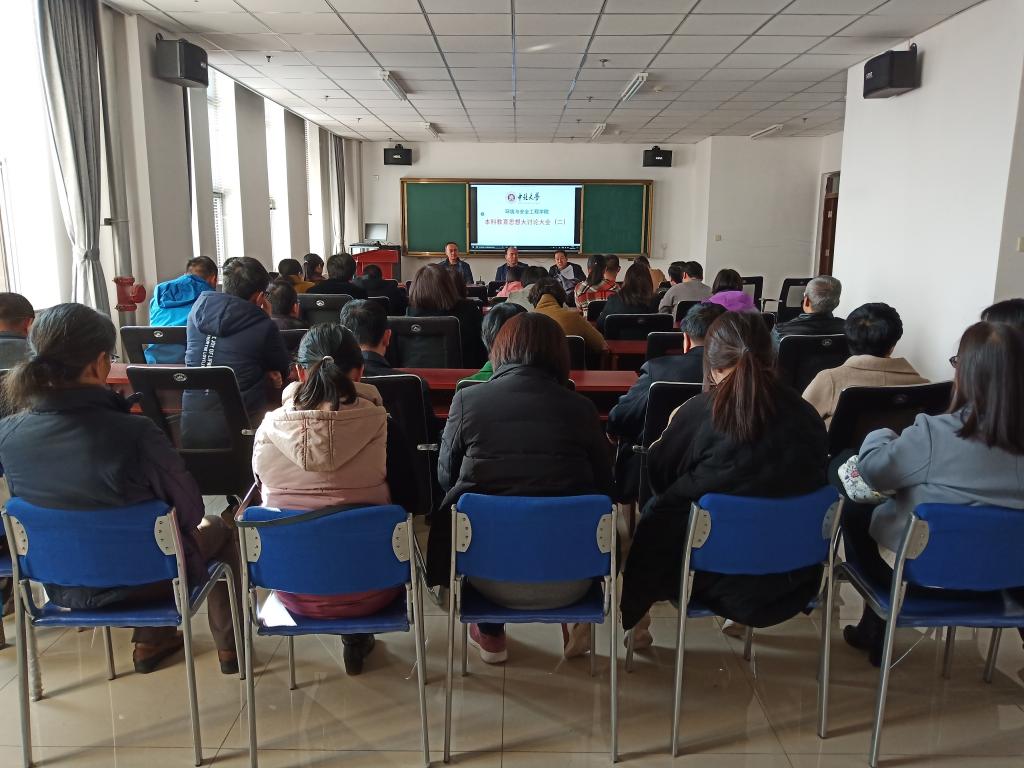 本次教育思想大讨论主题是工程教育专业认证核心理念及课程评估。曹雄副院长首先对工程专业认证的核心理念进行了解读,包括以学生为中心,以成果为导向,以持续改进为目标。要求所有教师认真学习和领会工程教育专业认证的思想,并在教学过程中逐步实施。