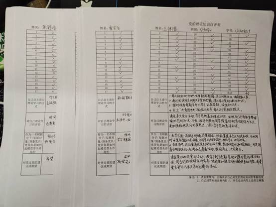 活动后半部分,通过填写表格的方式向同学们询问了“自主进行理论学习的方式、对自己理论学习的评价、作为一名积极分子/发展对象/预备党员/党员你是如何起模范带头作用的和对党支部的建议或期望”。更好的督促方式让同学们认识到自己的不足,也能更好的增强支部的凝聚力,“未入党的门,先做党的人”,在行动中以党员的标准严格要求自己,努力学习,力求进步,争取早日加入党组织。