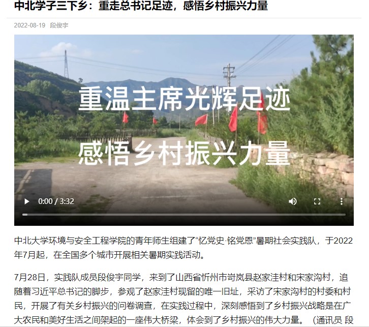 【中国青年网】中北学子三下乡:重走总书记足迹,感悟乡村振兴力量