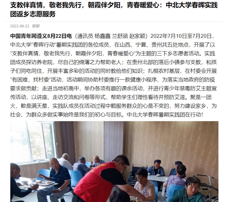 【中国青年网】中北学子三下乡:弘扬志愿精神,奋进青年力量