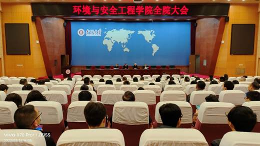 在图书馆五层学术报告厅召开了全院教职工大会。全院教师参加会议。会议由党委书记王振荣主持。