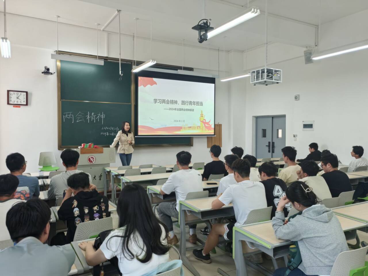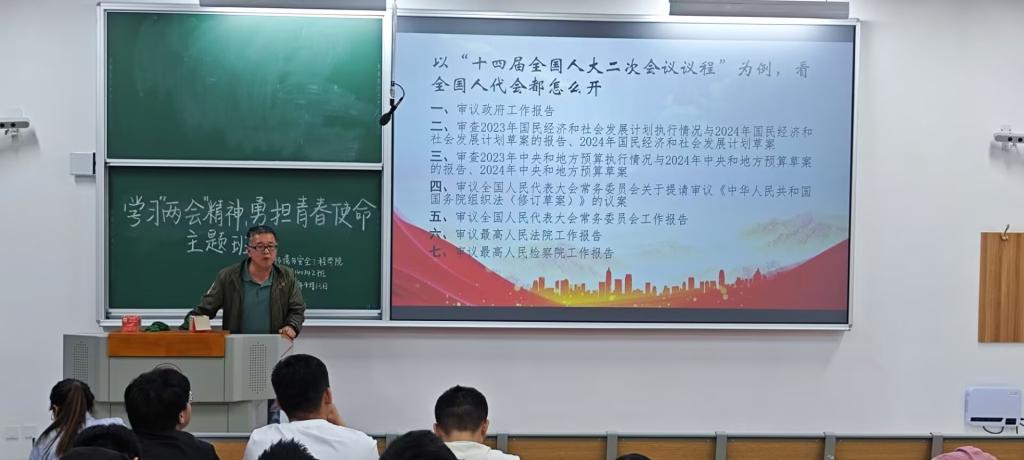 2024年4月14日—18日期间,校工会主席张清、校工会副主席赵振波及校工会科级干部王通、郭云应邀为黄色电影开展“学习‘两会’精神,勇担青春使命”主题班会。