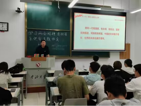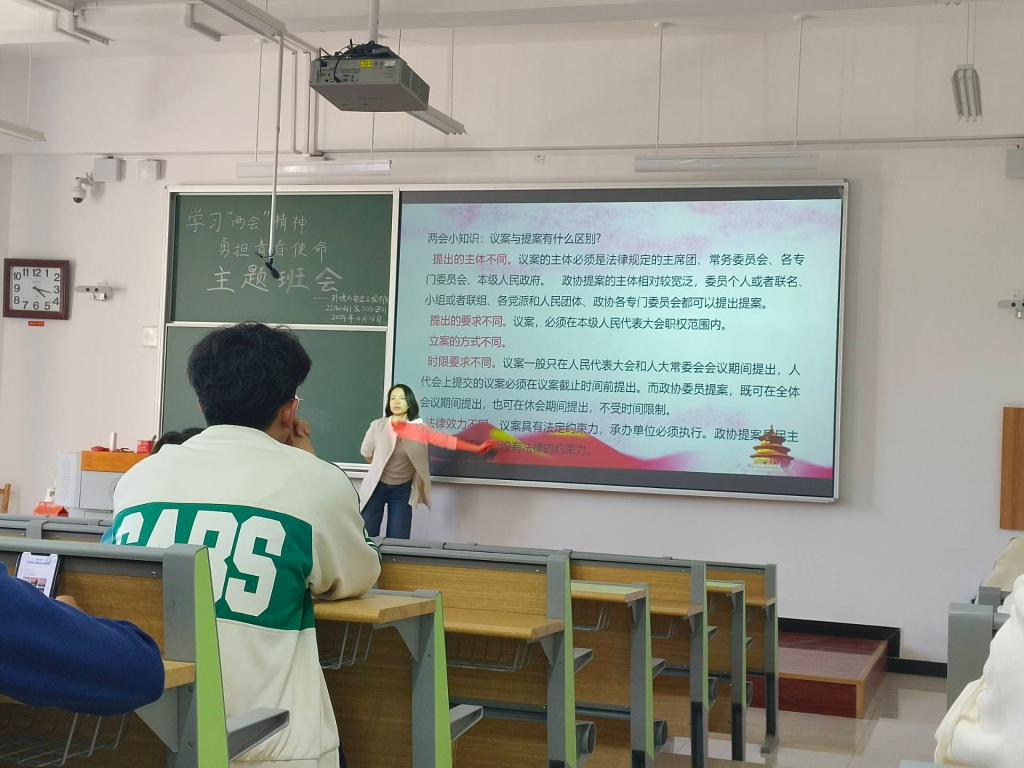 校工会副主席赵振波带领学生们分析了两会精神内涵,梳理了两会基本框架和核心议题,使同学们认识到国家的发展和未来,离不开全国各族人民的共同努力,也离不开代表们的积极建言献策;同时鼓励同学作为新时代青年,积极了解国家政策,参与学校、国家建设发展中。