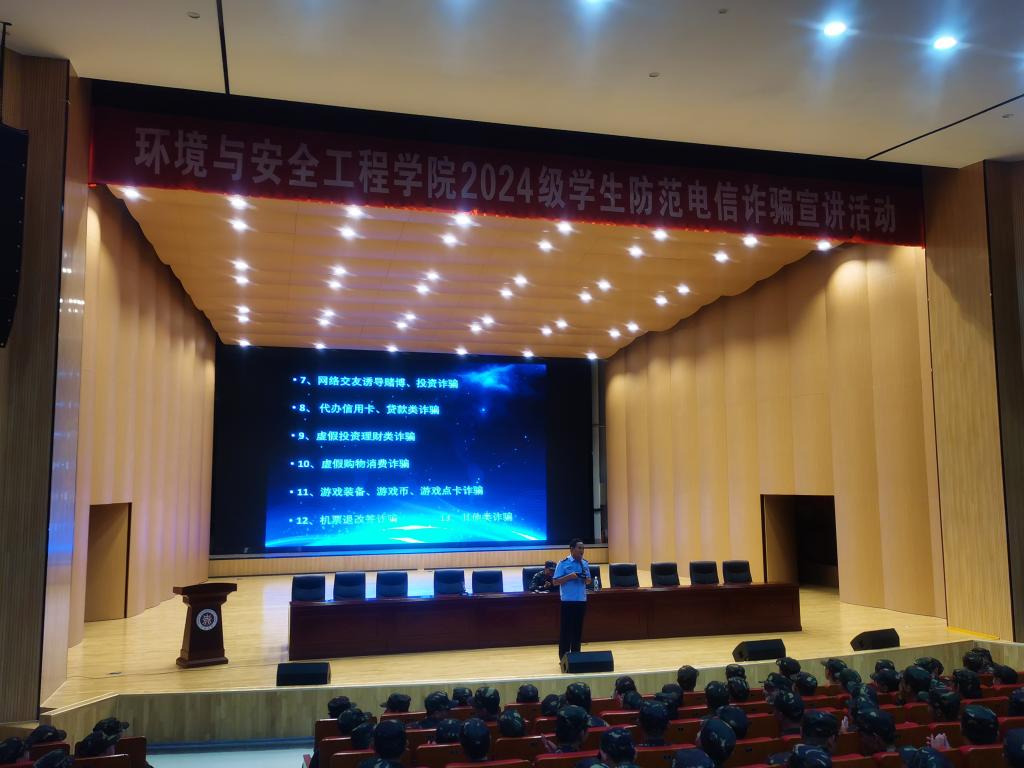 为进一步加强学校防范电信诈骗工作,构建和谐平安校园,为切实做好电信网络诈骗的防范教育,提高人人识骗防骗的意识和能力,预防和减少金融诈骗案件的发生,着力破解学生受骗案件频发的问题,2024年9月13日,黄色电影联合太原市公安局直属分局、山西财经大学红色金融宣讲团,为2024级新生开展“防范”电信网络诈骗宣讲”专题教育活动。